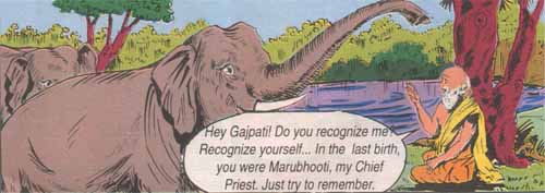 The furious king of elephants, was about to attact the sage when the sage lifted hid hand.The power of hid penance stunned Gajpati. The sage was a man of self knowledge. He addressed Gajpati-