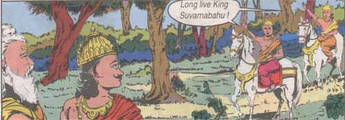 Before Suvarnabahu could reply, his soldiers came there looking for him. They were delighted to find him. they acclaimed loudly.