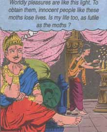 One evening, the King saw moths fluttering and getting scorched by lamp- flame. This made him think -