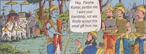 Yavanraj had heard a lot about the bravery of Prashwa Kumar. On learing that he had come with all his power he got frightened and surrenedred himself to Parshwa Kumar.