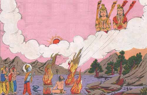 Hearing the Navkar Mantra faithfully, the Snake couple got peace. Leaving the soul with affections, they were reborn as Indra-Indrayani in the species of Snakes called Dharanendra and Padmavati.