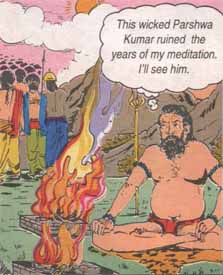 He went into deep jungle, meditated severely with revengeful thought and died. He was reborn as a demon named Meghmali.